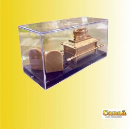 Arca da aliança médio material :plástico cor: dourado tamanho : - cumprimento ; 25 cm - largura 15 cm - altura 15 cm Saiba Mais