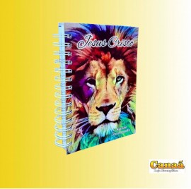 Agenda permanente Leão Aquarela (Jesus vive) com elástico,cada